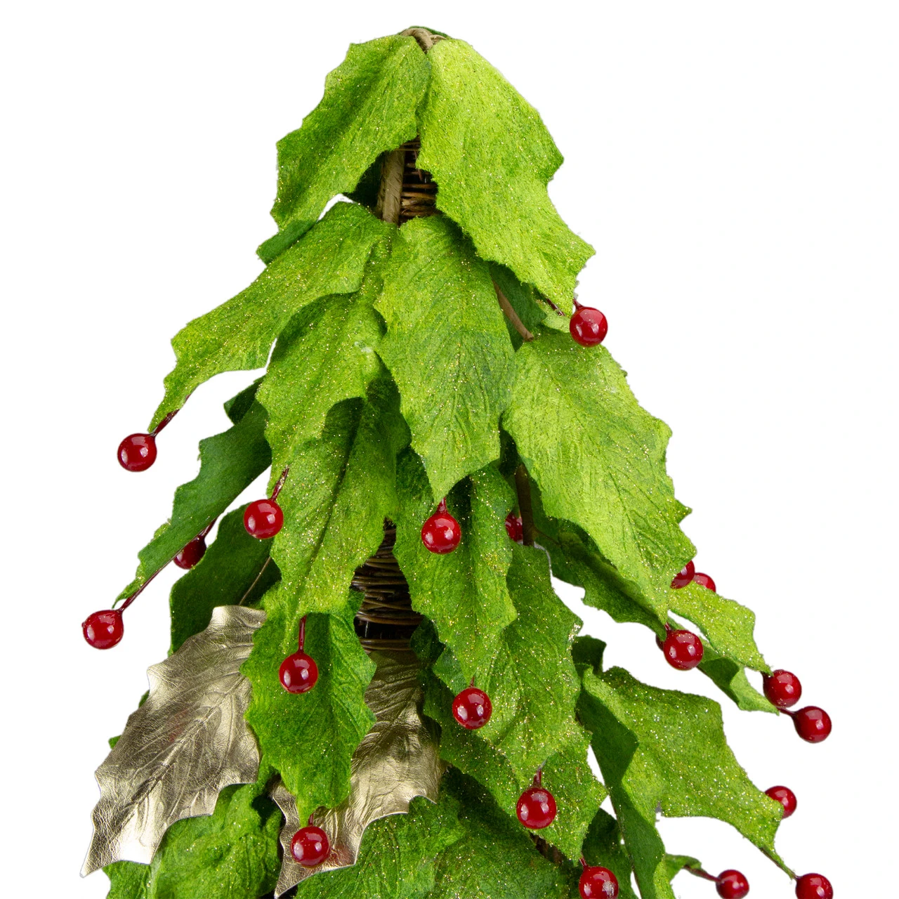 Features the night red holly berry and leaf artificial Christmas cone tree