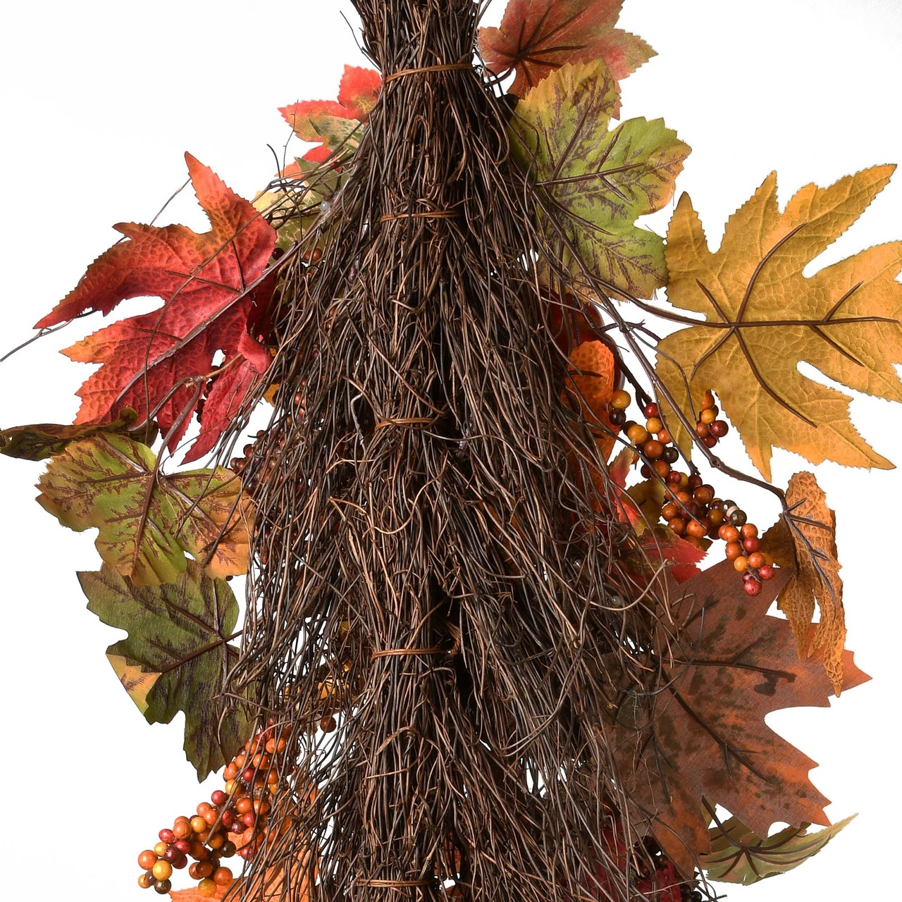 Assorted maple leaves on a woven branch base