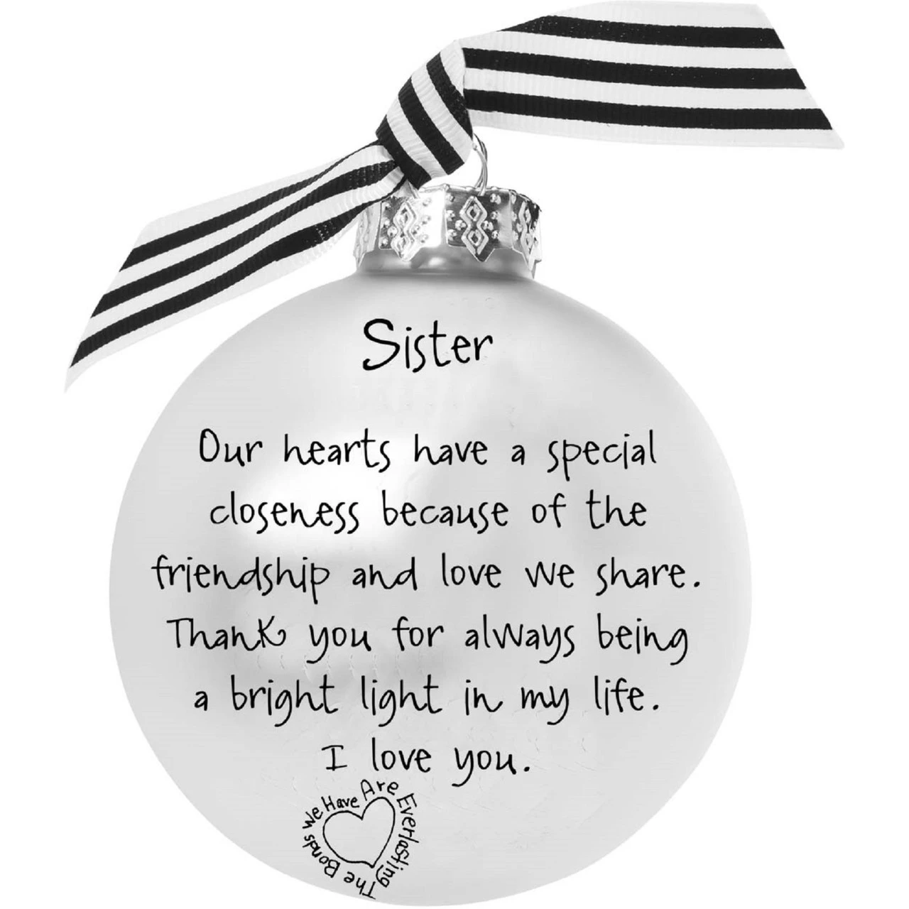 Black and white christmas ball ornament with a sister is a forever friend print