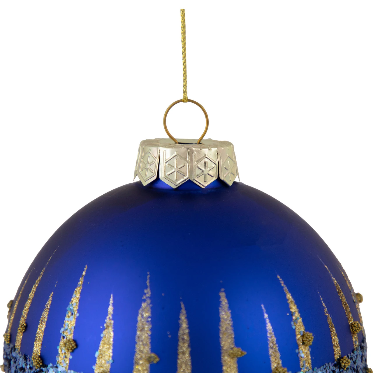 4″ Blue And Gold Glitter Glass Ball Christmas Ornament