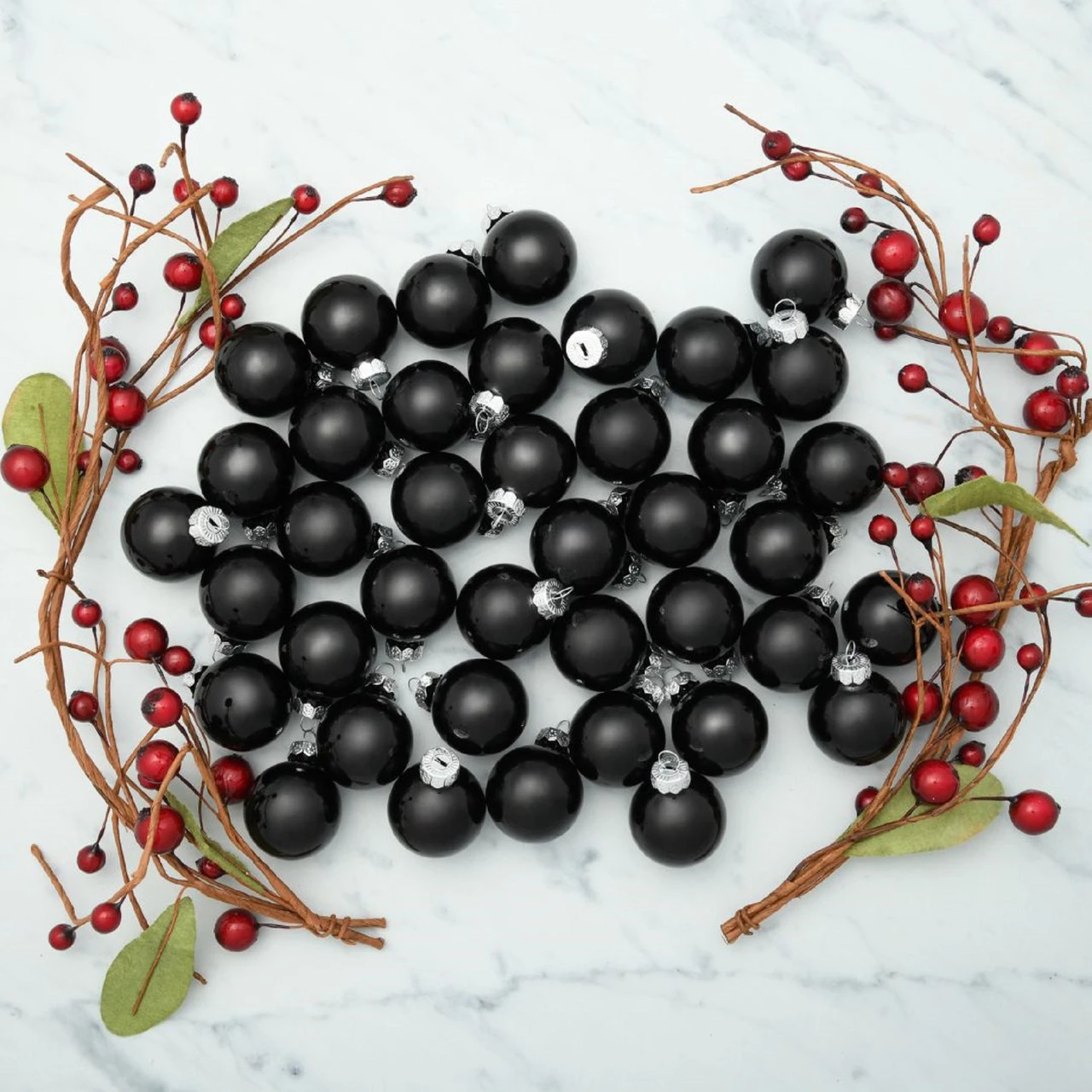 Balls are equipped with silver ornament caps