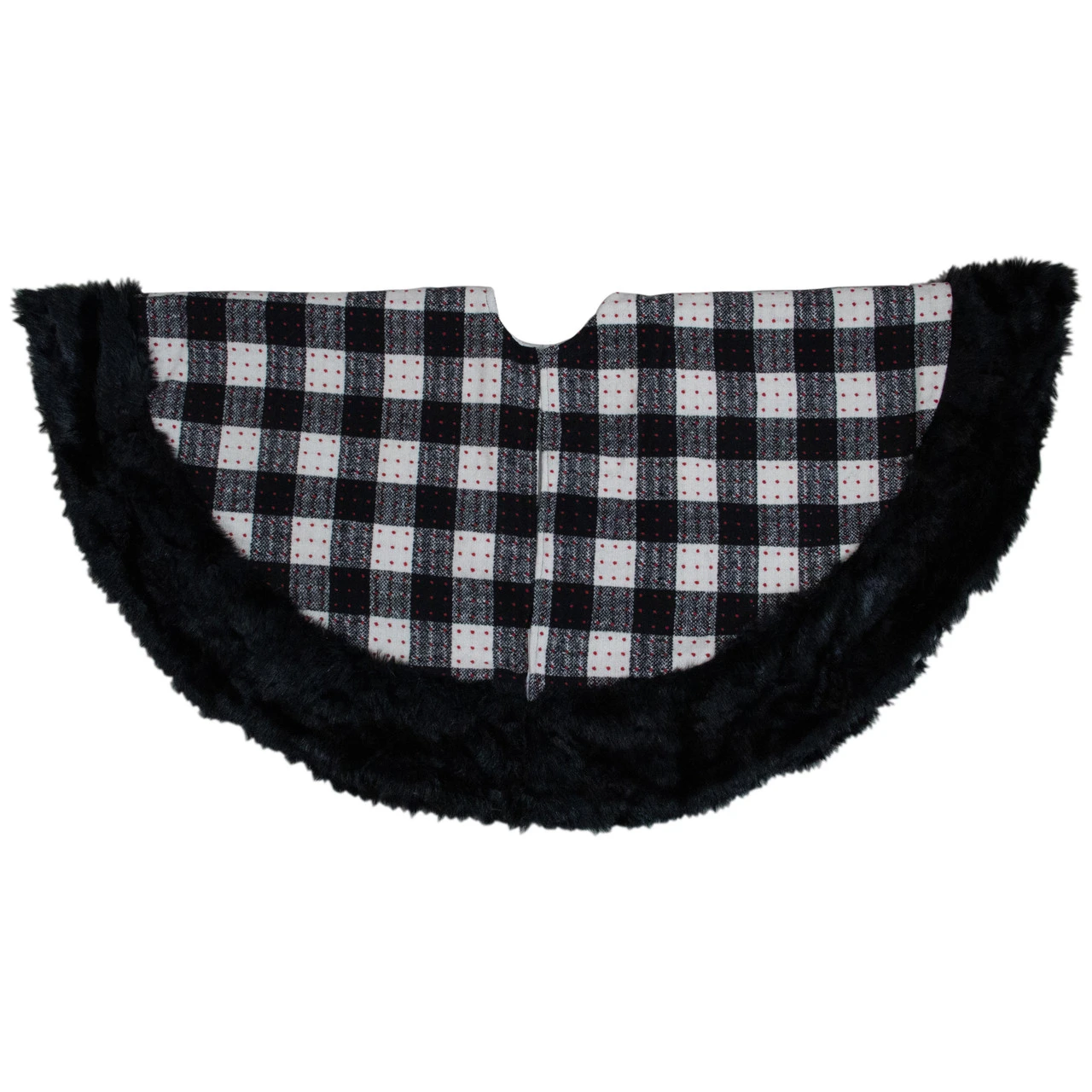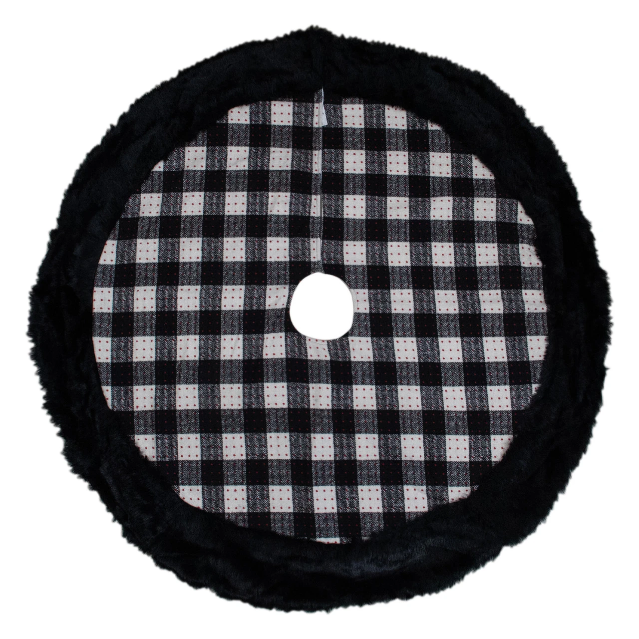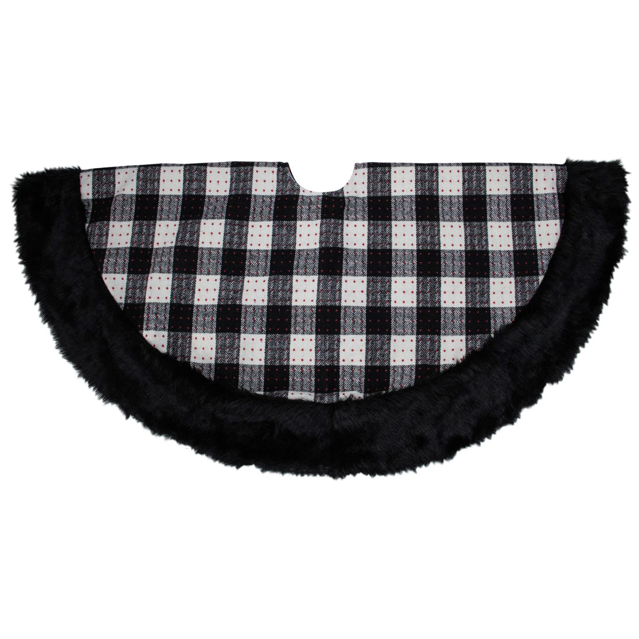 48″ Red And Black Plaid With Polka Dots Christmas Tree Skirt