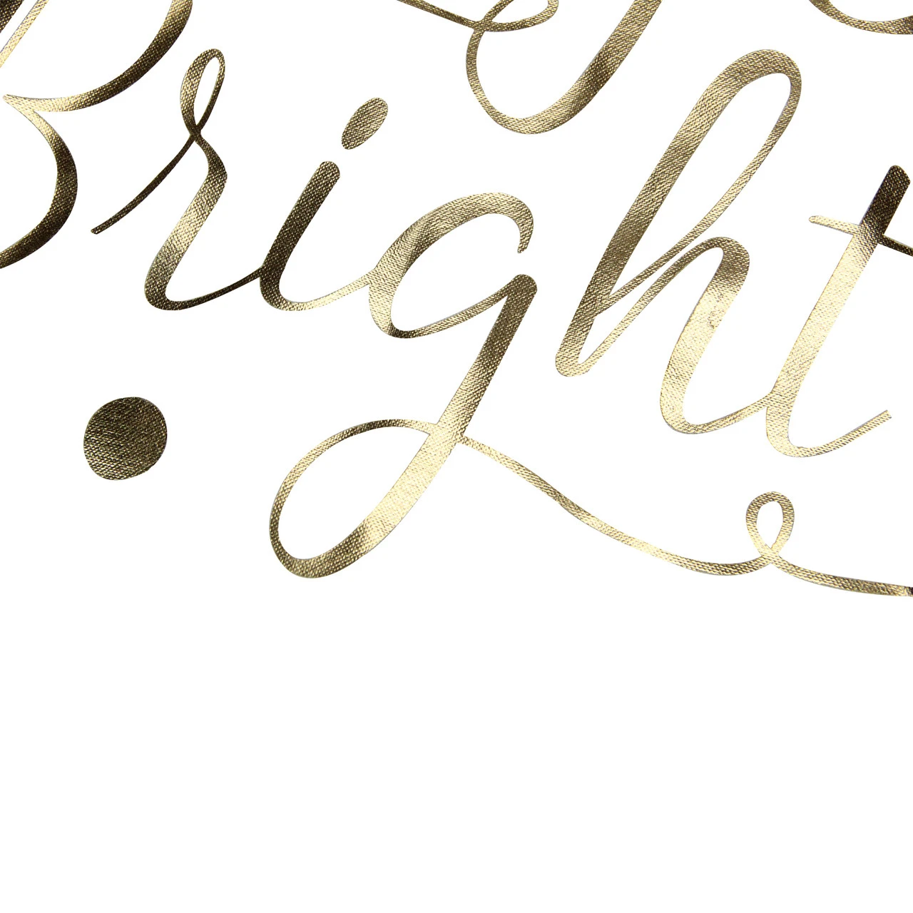 Features gold lettering Merry and Bright surrounded by a polka dot design