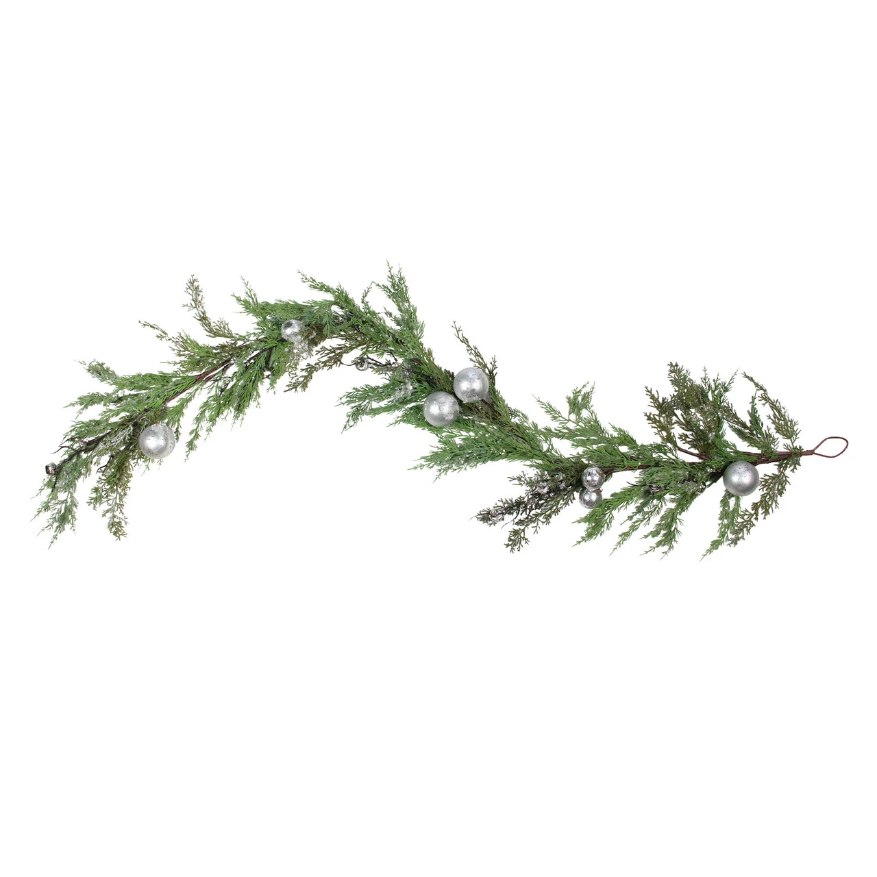Accented with matte and shiny silver ball ornaments with a weathered and iced finish