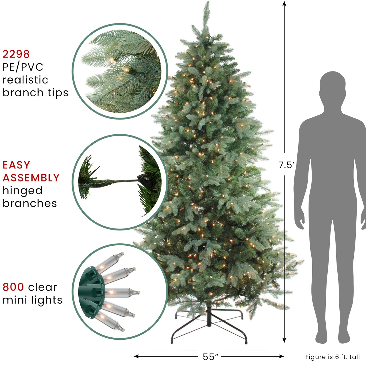 Dimensions: 7.5′ high (from the base of the stand to the top of the tree)