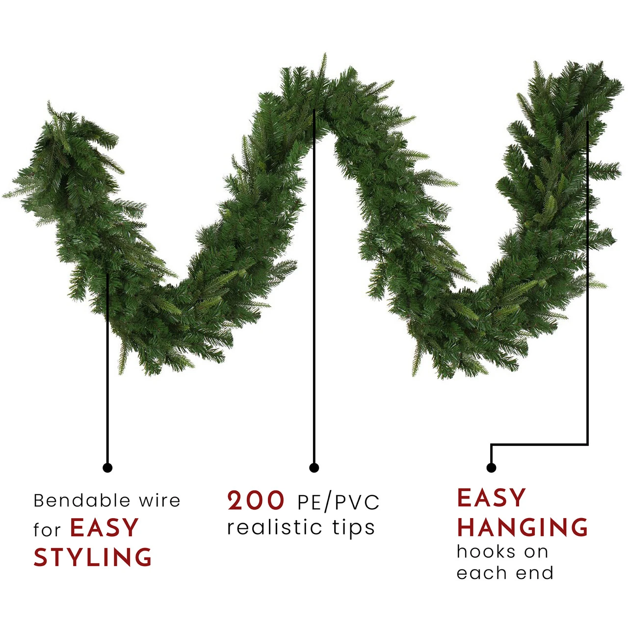 Bendable wire center allows for you to shape the garland any way you desire