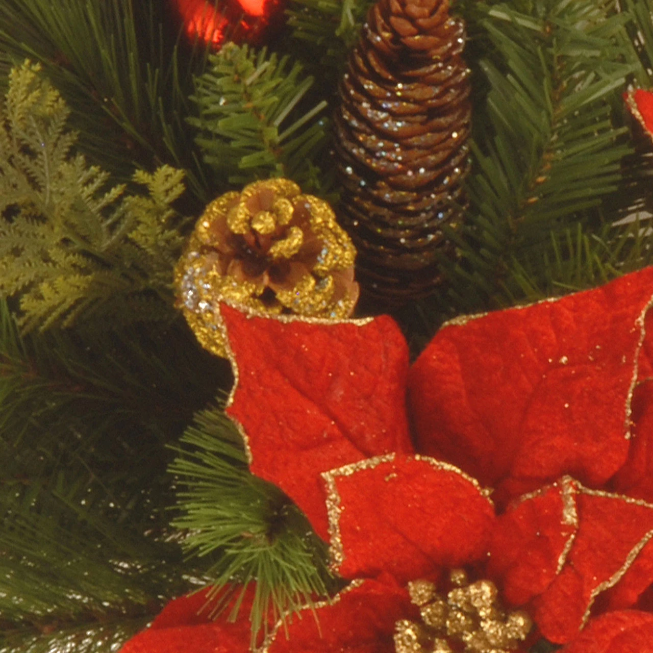 Material(s): PVC/glass bulbs/wire/metal/pine cones/fabric