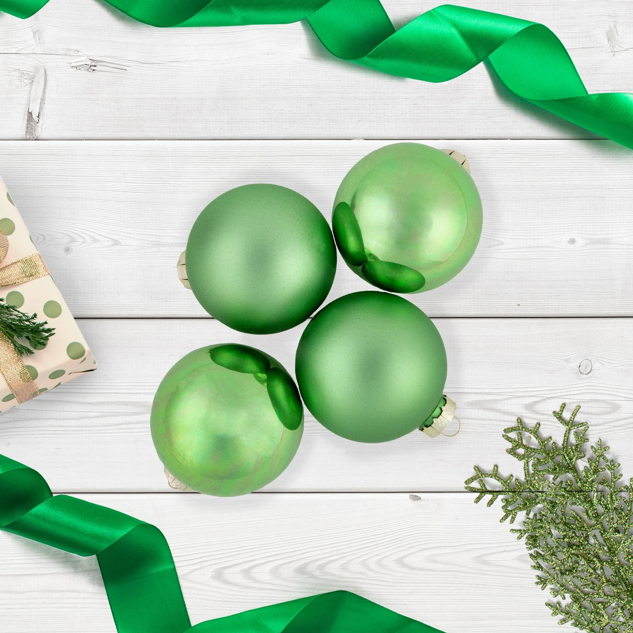 Balls are equipped with silver ornament caps (ornament hooks are not included)