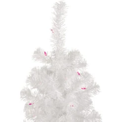 4′ Pre-Lit White Pine Slim Artificial Christmas Tree – Pink Lights