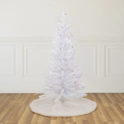4′ Pre-Lit White Pine Slim Artificial Christmas Tree – Multi Lights