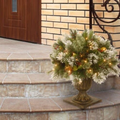 24” Pre-lit Potted Wintry Pine Porch Bush Artificial Christmas Tree – Clear Lights