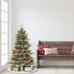 4.5′ Pre-lit Aspen Fir Medium Artificial Christmas Tree, Multicolor Lights