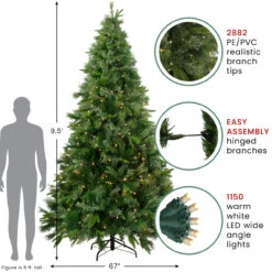9.5′ Pre-Lit Ashcroft Cashmere Pine Artificial Christmas Tree – Warm White LED Lights