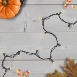 50-Count Orange LED Wide Angle Christmas Lights – 23.25′ White Wire
