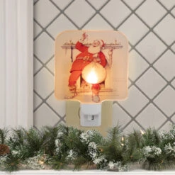 6″ Norman Rockwell ‘Santa Trimming Tree’ Glass Christmas Night Light