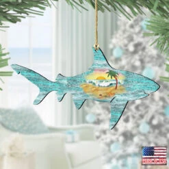 Set Of 2 Dolphins Beach Scene Wooden Christmas Ornaments 5.5″