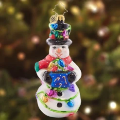Christopher Radko Light The Night Snowman Glass Christmas Ornament 1021614
