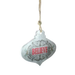 14″ Silver And Red ‘Believe’ Onion Wall Hanging Christmas Ornament