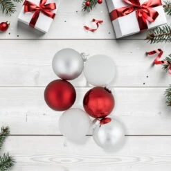 96ct Red And White 3-Finish Christmas Glass Ball Ornaments 3.25″ (80mm)