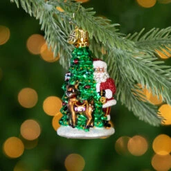 3″ Green, Icy White, And Yellow Tree And Toys On An Icicle Collectible Christian Ulbricht Ornament