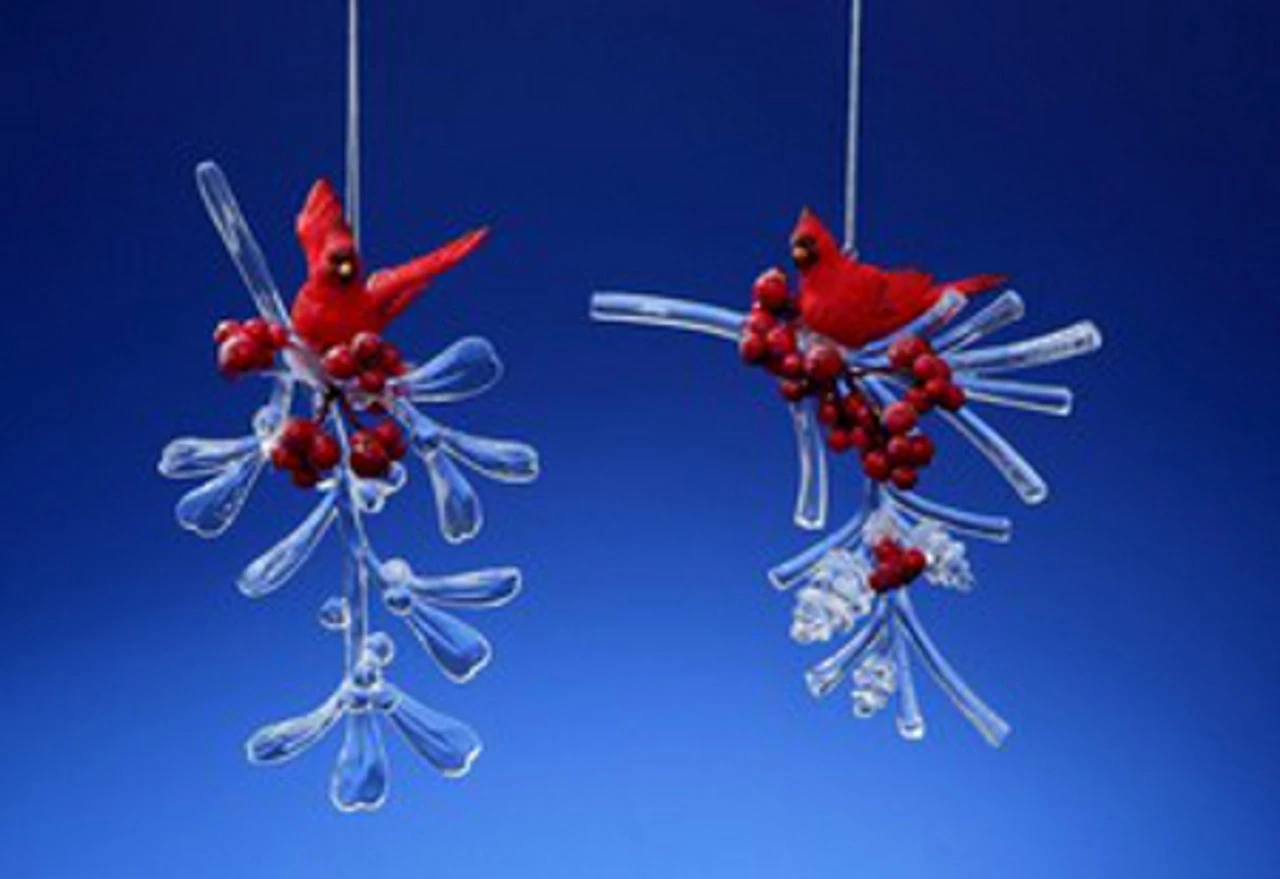 Each features two styles of cardinals on berry covered branches with silver hanging cord