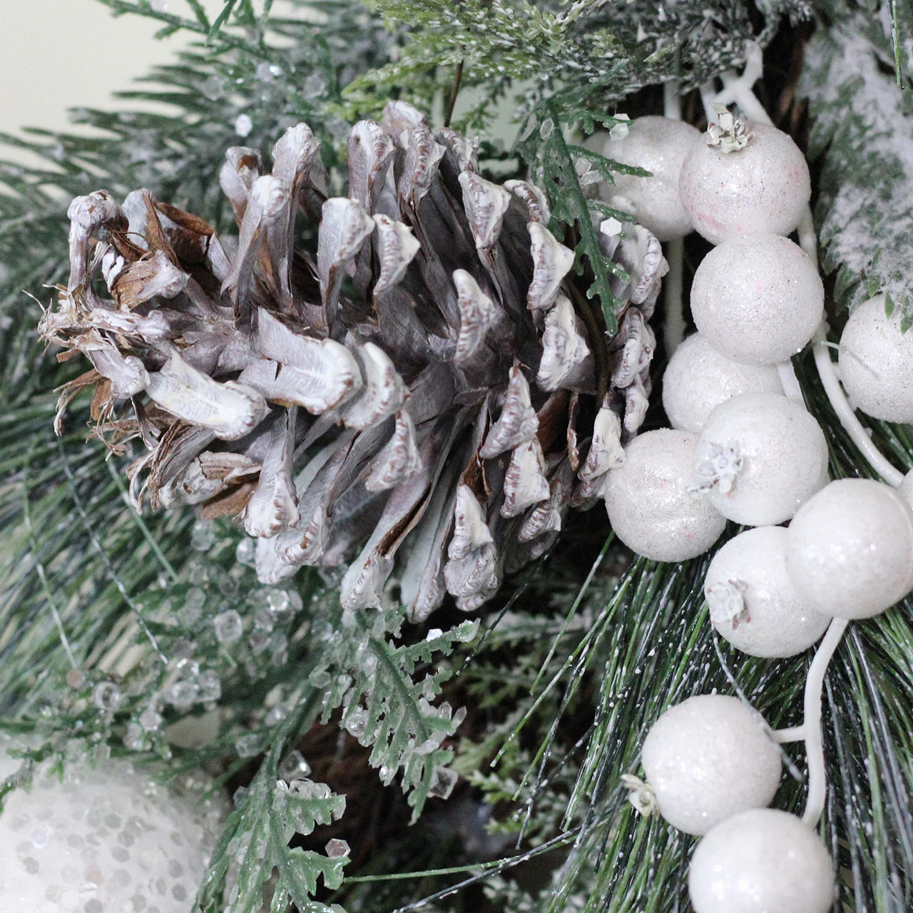 Frosted mixed pine and pine cone Christmas wreath