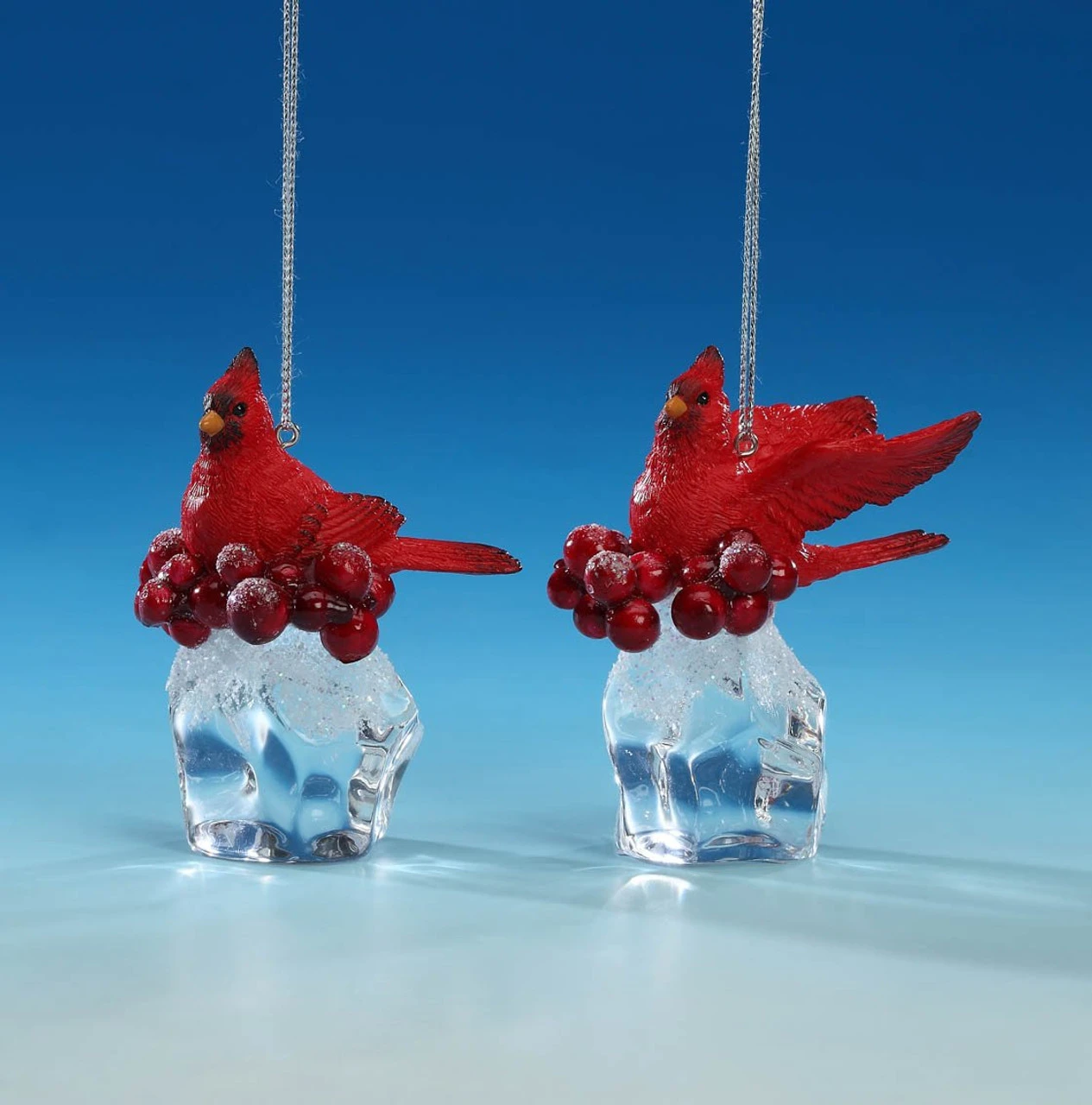 Features red cardinal on an ice cube