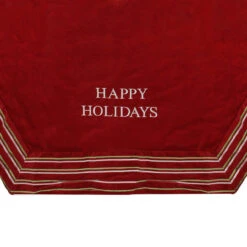 56″ Red And White ‘Happy Holidays’ Christmas Tree Skirt With Striped Trim