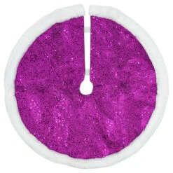 20″ Magenta Glittered Mini Christmas Tree Skirt With White Fur Trim