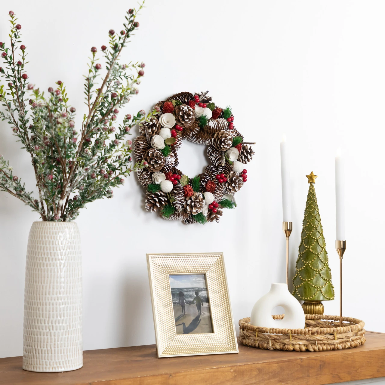 Dimensions: 13.5″ diameter (measured from outermost tip/edge to outermost tip/edge across the wreath)