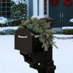 36″ Wintry Pine Battery Operated Artificial Christmas Mailbox Swag – Warm White LED Lights