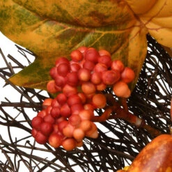 Maple Leaf And Berry Twig Artificial Fall Harvest Wreath, 22-Inch