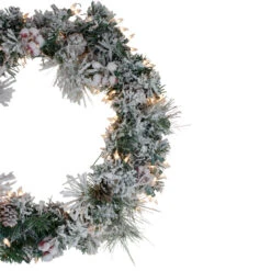 Pre-lit Heavily Flocked Berries And Pine Cones Artificial Christmas Wreath – 24-Inch, Clear Lights