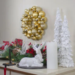 Vegas Gold 3-Finish Shatterproof Ball Christmas Wreath – 24-Inch, Unlit