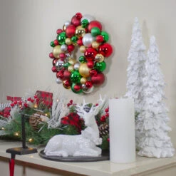 Traditional Colors 2-Finish Shatterproof Ball Christmas Wreath, 24-Inch