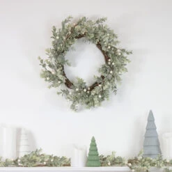 White And Green Pine Cone Artificial Christmas Wreath – 24-Inch, Unlit