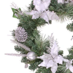 White And Silver Mixed Pine Artificial Christmas Wreath, 24-Inch, Unlit