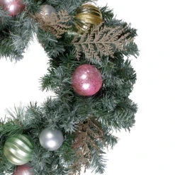 24″ Unlit Pre-Decorated Pink And Gold Ornaments Frosted Artificial Christmas Wreath