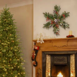 24” Pre-Lit Wintry Pine Artificial Christmas Wreath – Clear Lights