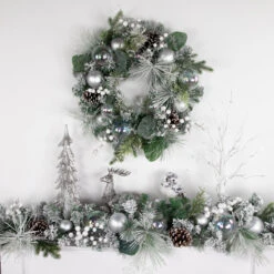 Flocked Pine With Teal And Silver Ornaments Artificial Christmas Wreath, 24-Inch, Unlit
