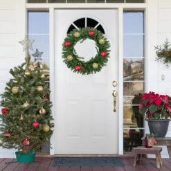 Pre-Lit Traditional Pine Artificial Christmas Wreath – 30-Inch, Multi Lights
